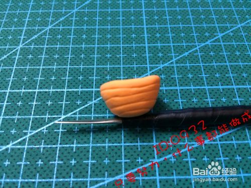 取出浅橙色的粘土,做出一个碗型,在外层画上线做出蛋窝,如图