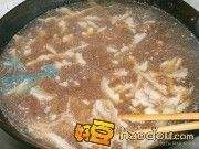 8将切好的肉皮再次倒入锅中,加盐、酱油、鸡精,大火烧开转小火咕嘟约2小时。