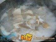 3将肉、肉皮捞出用清水冲洗干净,如果肉皮上有毛,此时可以处理干净。