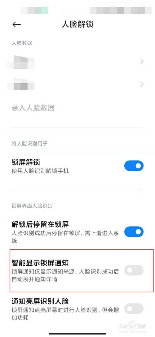 点击<智能显示锁屏通知>,打开开关,这样就完成了。