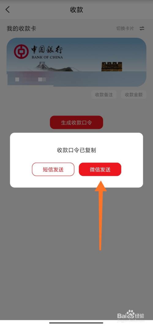云闪付APP中可生成收款口令,将口令发送给好友后,好友可复制后转账给对方。
