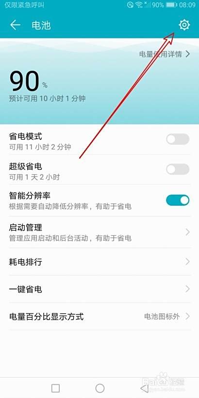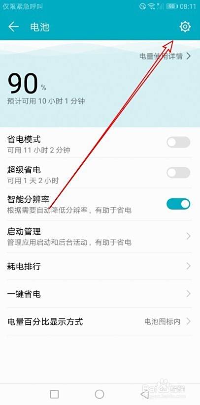 然后在打开的手机电池详情页面中点击右上角的“设置”按钮。