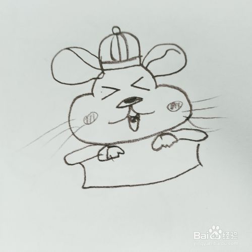 第一步,我们来画卡通老鼠的头部轮廓,还有老鼠头上戴着一个帽子。