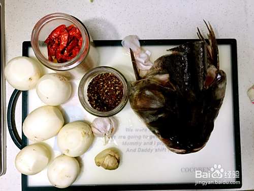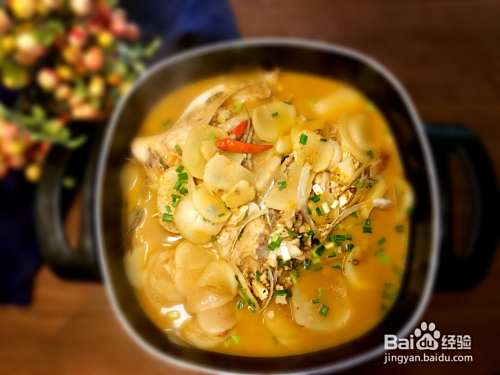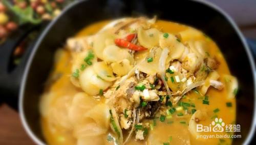 主材料题,鱼头一个,洗净对半切开;萝卜洗净切片