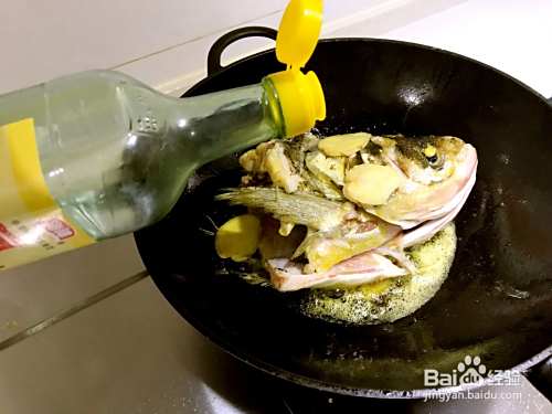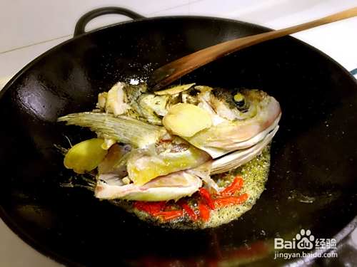 鱼两面煎好后,再加入姜片,用油爆香姜味