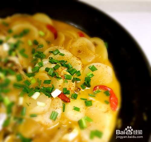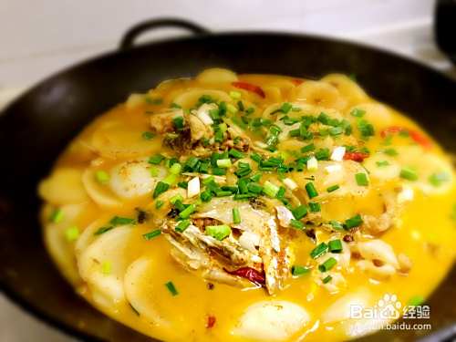 煮至汤汁快收干时,如图,加入鸡精、葱花,关火起锅