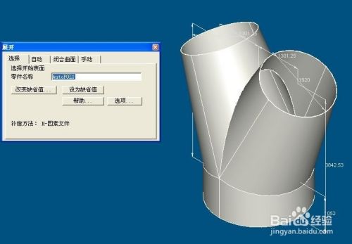 点击“展开工具”按钮,出现“展开”窗口。“展开”窗口中的参数不用修改,下面直接在三维模型上点击想展开的壳体外表面就行了。
