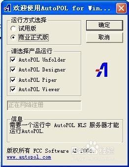 在出现的对话窗口,首次打开此软件时需要将“运行方式选择”选为“商业正式版”,并将“请选择产品运行”的内容全部选择。