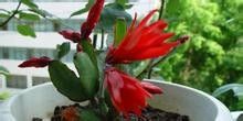 在春季里取一盆仙人掌作为砧木。把亮红仙人指的每一节头切割成半园状,待嫁接用。