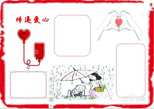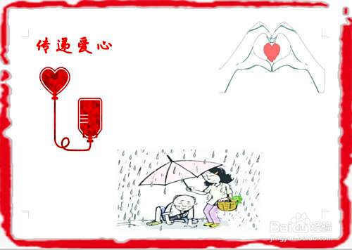 在爱心传递几个字下面 我们画上爱心献血的画面