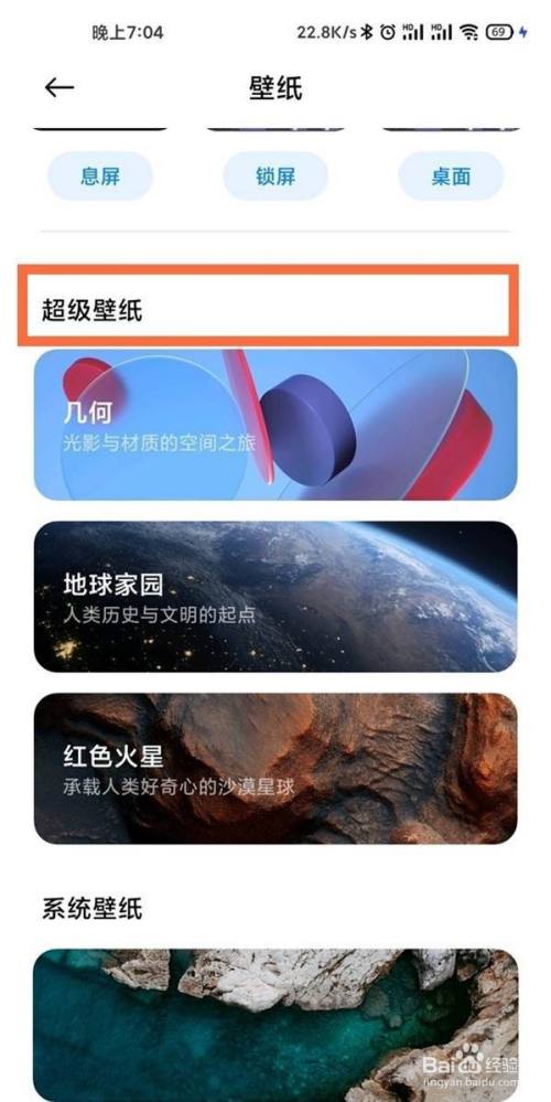 也可以在桌面主界面空白处长按,在桌面设置中点击修改壁纸,点击超级壁纸,选择壁纸样式进行设置。