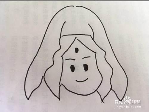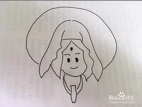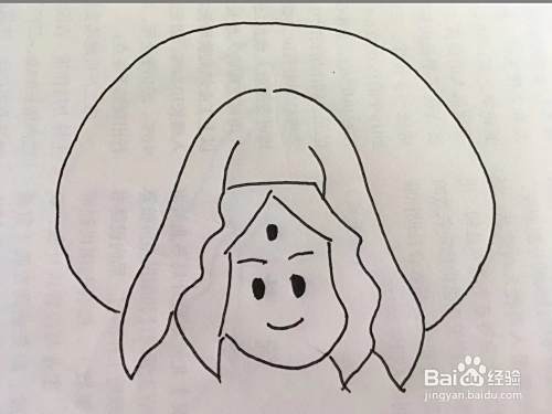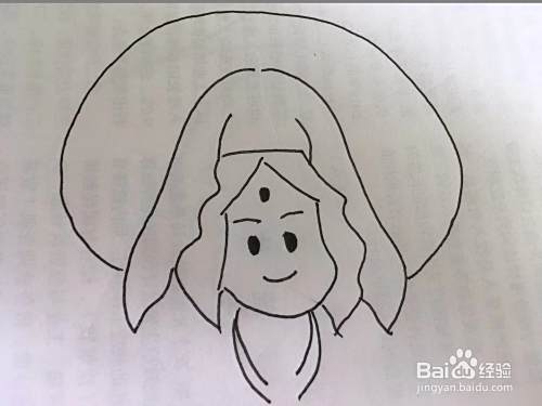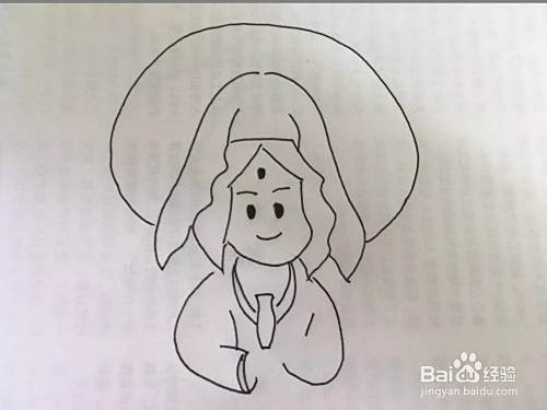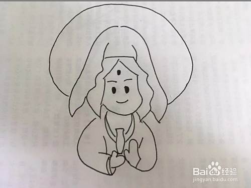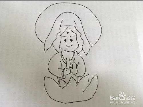 画出观世音菩萨的莲花座来,就这样,观世音菩萨的Q版画就画好啦,是不是很可爱呢。