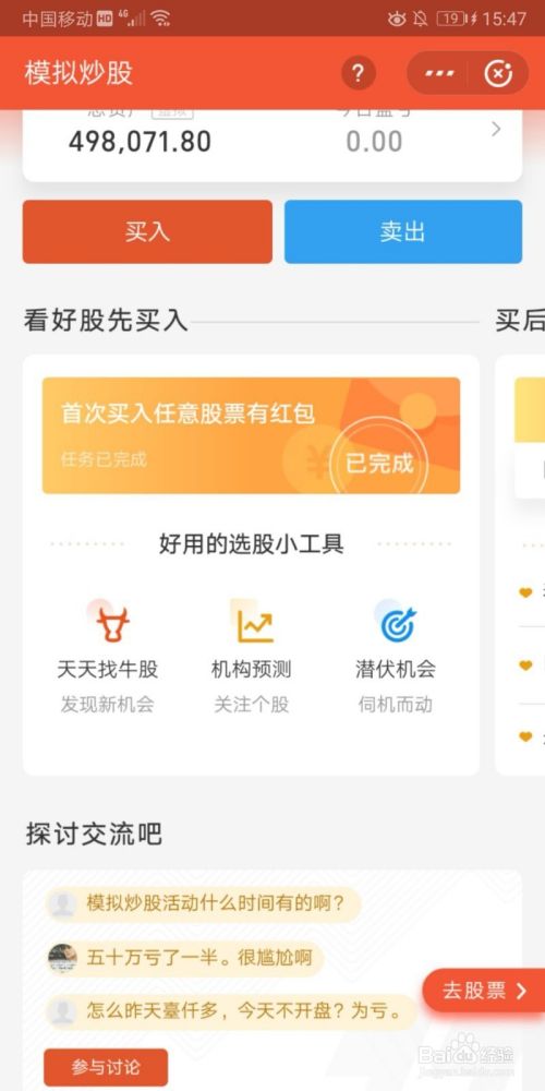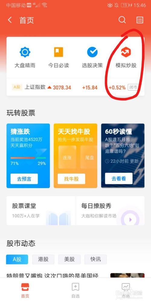 在股票的主页又有一个模拟炒股,这个是用的虚拟货币,不会花费一分钱的