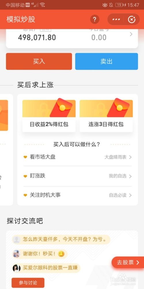 你在里面用虚拟货币选择购买股票,新人进去有新人活动,首次竞猜和日收益达到2%还有连续三天增长就可以获得红包。