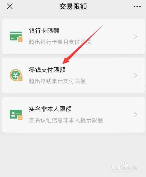 点击【零钱支付限额】。