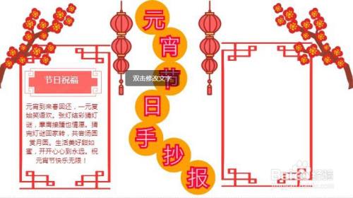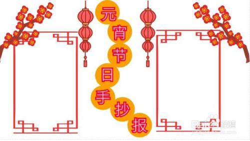 在黄色的底纹里面写上:元宵节日手抄报,如下图,