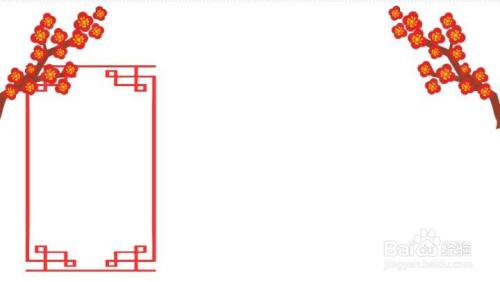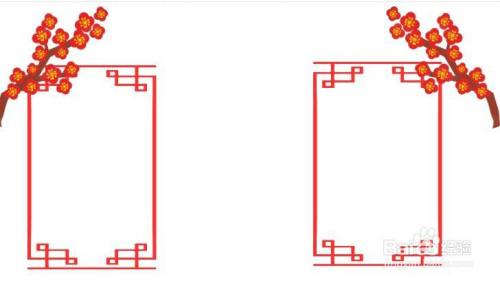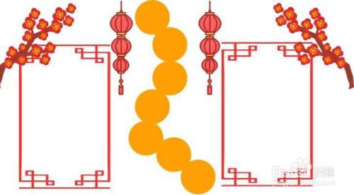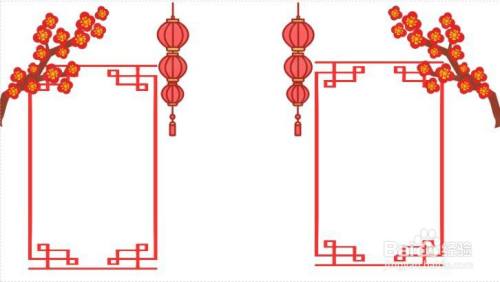 在纸张的中间,两个长方形边框的旁边各画一个红灯笼,如下图。