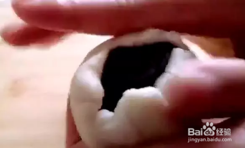 压扁,用擀面杖把它擀成圆形,包上豆沙馅,老陈的办法是慢慢往上推,成圆形