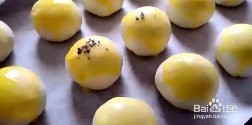 放在烤盘里,给表面刷上一层蛋黄,撒点黑芝麻,上下1800度烤至25分钟即可