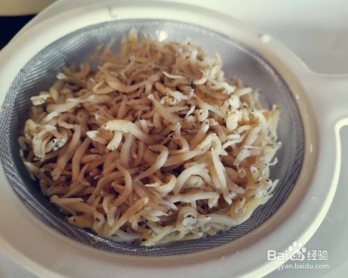 准备好各种材料。将·小银鱼用清水洗净,泡二十分钟,捞出沥水备用。