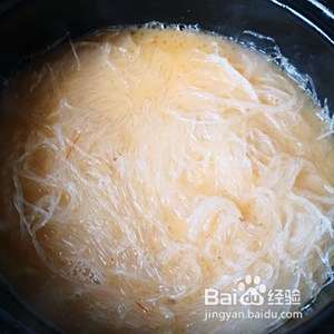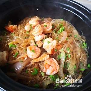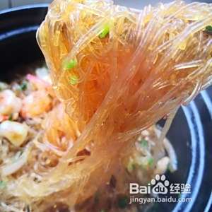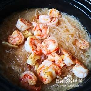 放入粉丝,倒入煮好的虾汤(把虾头捞出),中小火煮3分钟左右。