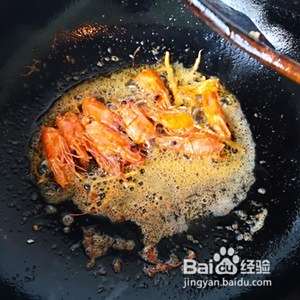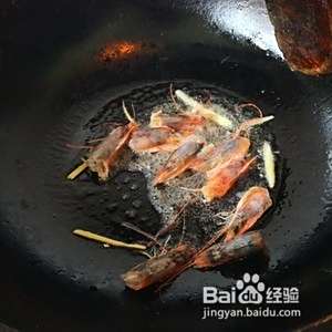 放姜片爆热油,放入虾头,小火炒出虾黄。