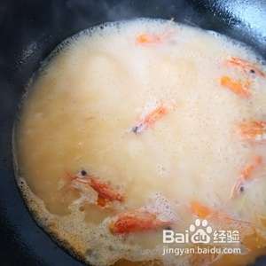 加二碗水,中小火煮5分钟左边,煮出鲜美虾汤。