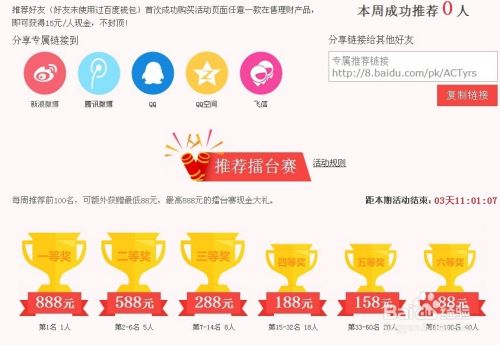 完成之后,在首页即可看到自己的推广链接,将这个链接发给其他人,只要对方按照以上方式成功注册并激活帐户,即可获得15元/人的佣金收入,佣金将会转到百付宝账户,到时候可以申请转出到银行卡!