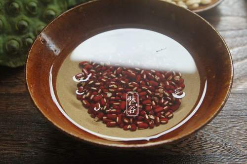 3赤小豆提前浸泡1小时;赤小豆是细长的,稍扁,常吃赤小豆,可以清血、消除内脏疲劳,对心脏病和肾脏病患者特别有益。