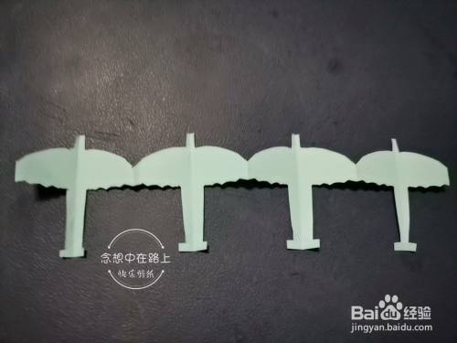 如图:最后我们把它展开来,四把连在一起的雨伞就剪好了。
