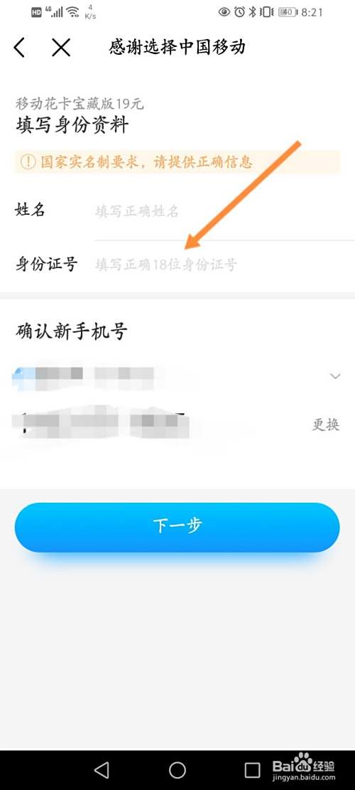 输入身份信息和地址,就可以领取移动花卡宝藏版的。