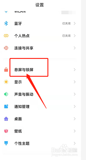 在设置页面点击息屏和锁屏。