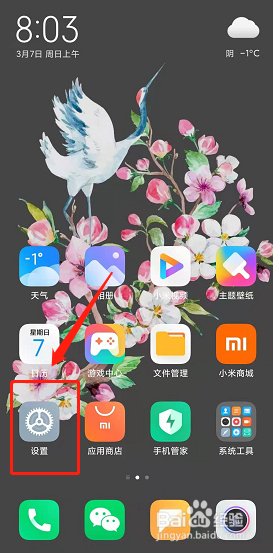 解锁小米手机屏幕后,点击设置。