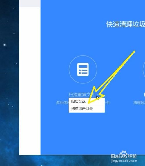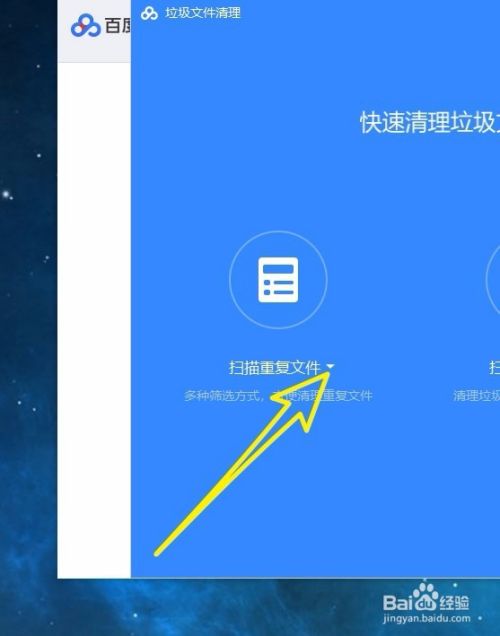 接着我们选择扫描重复文件,右侧的小箭头,点击打开,如下图所示。