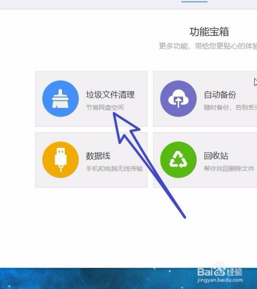 在功能宝箱中找到垃圾文件清理的功能,点击进入,如下图所示。