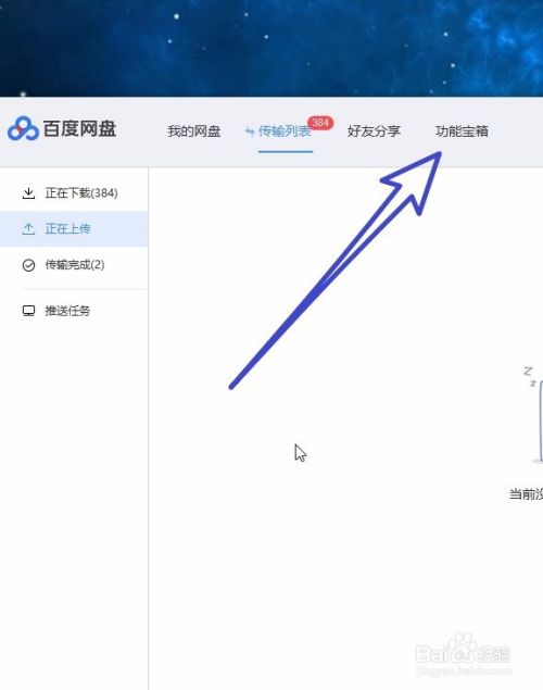首先我们打开百度网盘,在上方的列表中找到功能保障,点击进入,如下图所示。