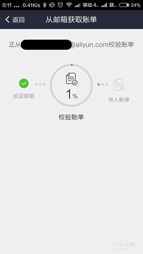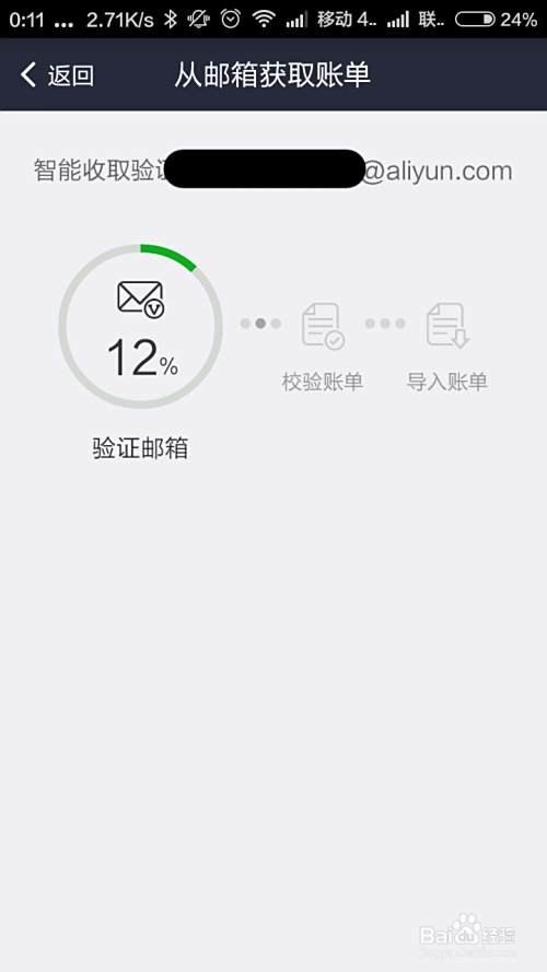 输入资料完成后,点“获取账单”,等待几秒钟支付宝就可以从你的邮箱中读取您的信用卡账单了。