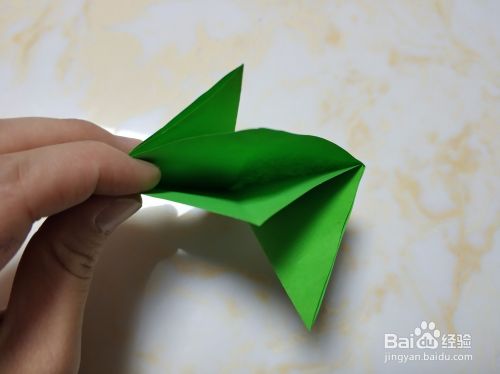 然后拿起另一个角,以同样的方式 往中间斜斜地折过去。