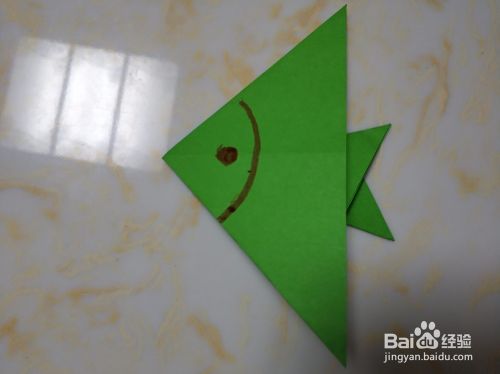然后将整张纸反过来,就会看到小鱼的形状了。然后给小鱼画上眼睛就大功告成了。