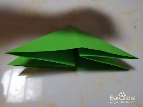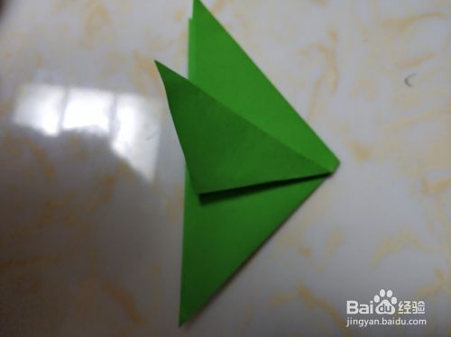 然后将三角形的底部的角再对折,这样就会变成一个更小一点的三角形。