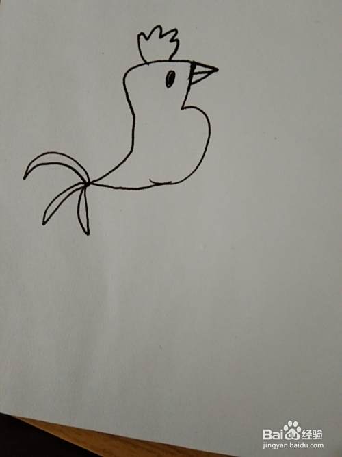 第四步:画大公鸡的尾巴、鸡冠和眼睛,如图所示。
