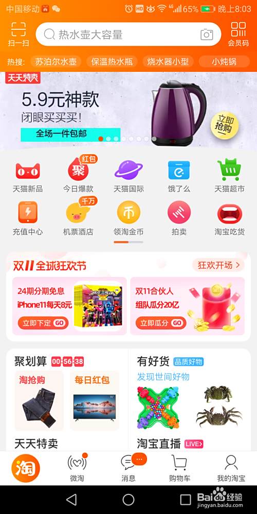 首先在手机上找到”淘宝“点击打开。