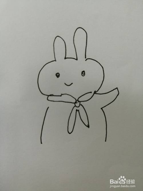 第三步,接着在可爱的小兔子的眼睛下面画出可爱的小嘴巴,小嘴巴画法也比较简单。