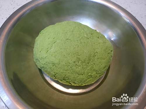 面盆中加入500克左右面粉,然后再加入250克左右的菠菜汁,先用筷子把面粉搅拌成面絮,然后再下手揉面,揉成面团后盖上盖子进行醒面。