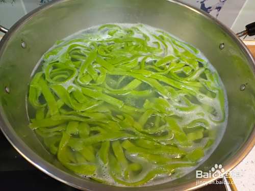 锅里加入适量清水,水开后加入一小勺盐,然后把切好的面条下锅,煮至断生后捞出。