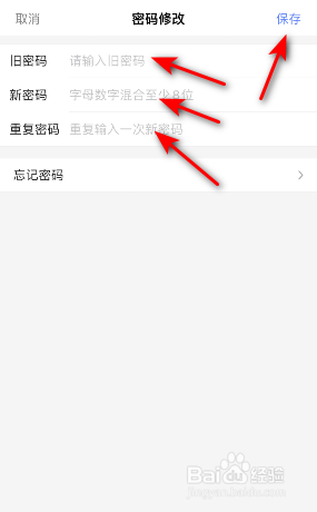 然后输入旧密码、新密码,之后再次输入新密码,点击保存即可。