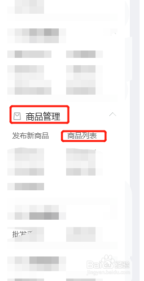 2,在左侧找到‘商品管理’,点击‘商品列表’
