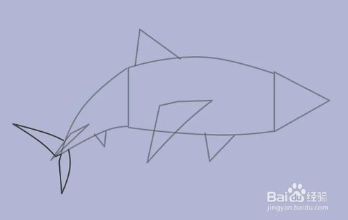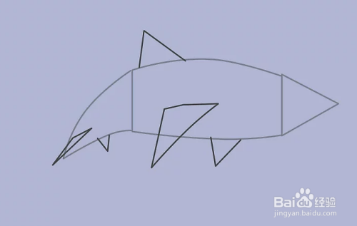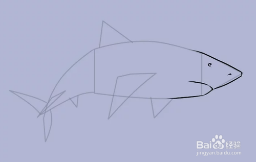 用三角形画鱼翅。鲨鱼有胸鳍、背鳍和肛鳍。