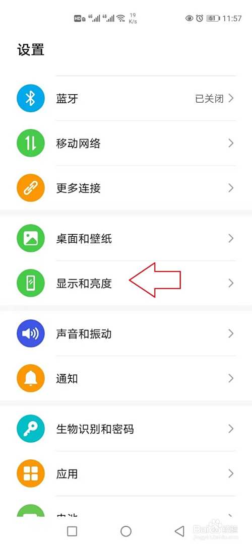 在显示的页面上,点击选择【显示和亮度】。