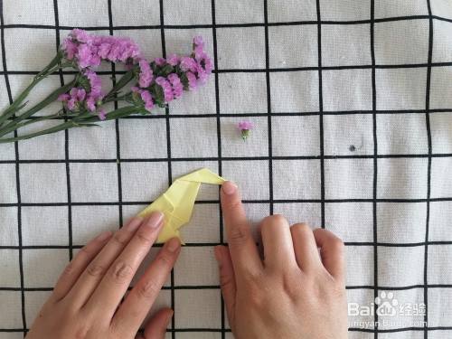 将上面的角向下折叠,打开后根据折痕把角往里折叠。如图所示。